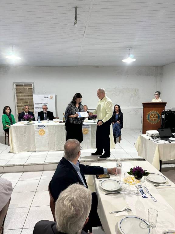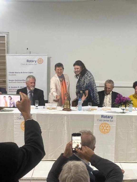 Aconteceu no dia 04 do corrente a mudança de presidentes no Rotary Club de Lavtras-Sul. A companheira Cleide Maria de Brito Lopes passou a presidência para a companheira Maria Auxiliadora de Miranda e Souza que conduzirá o clube no ano rotário 2024-25.